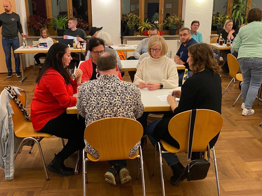 Unsere Kandidaten und Kandidatinnen für die Gemeinderatswahl, die beim Merchessen dabei waren, sind von rechts vorne im Uhrzeigersinn um den Tisch: